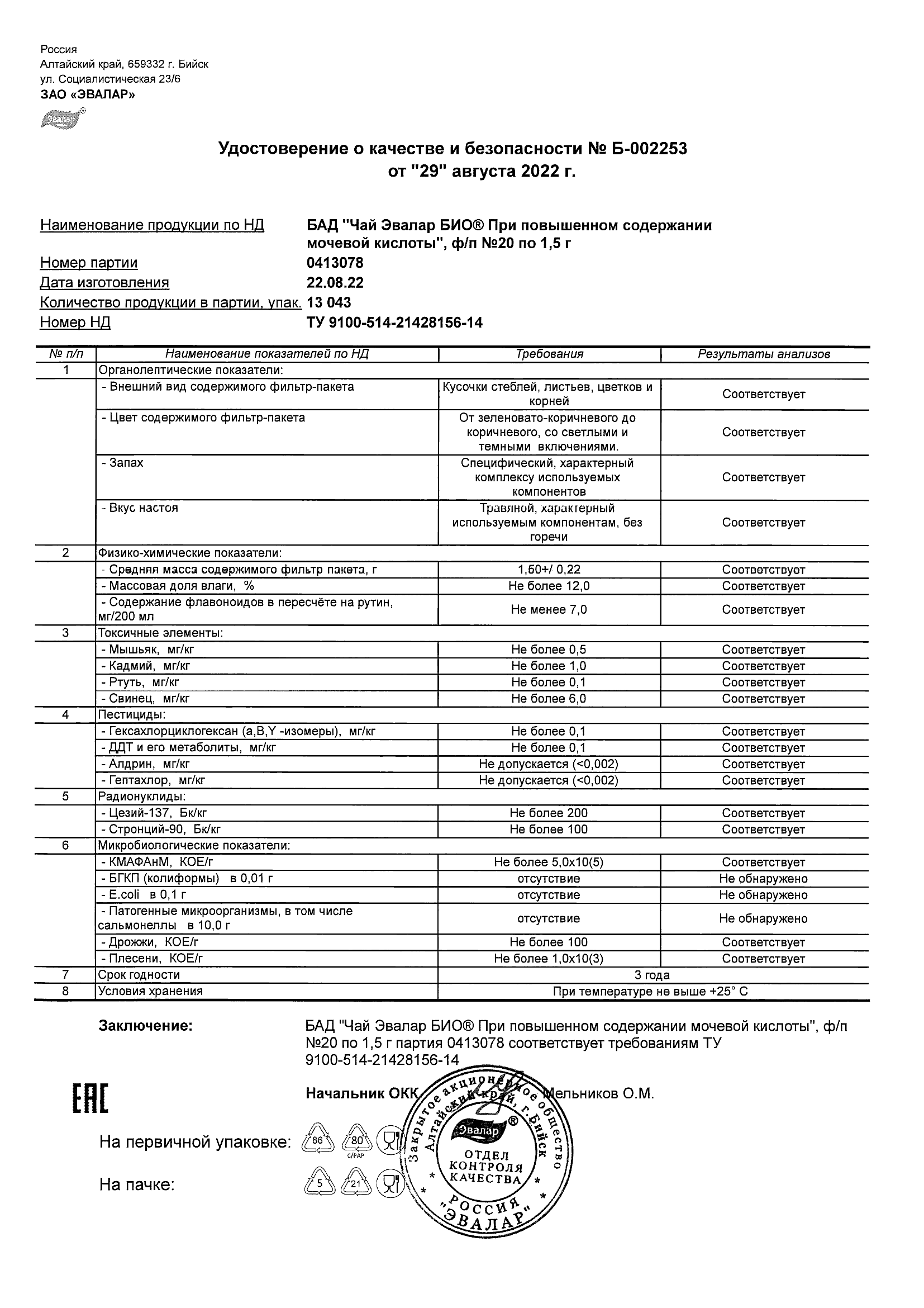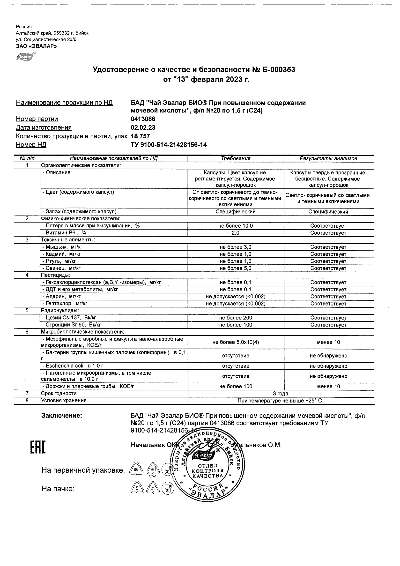 Index of /docs/chaj jevalar bio pri povyshennom soderzhanii mochevoj kisloty, f-p N20 po 1,5 g (s24)/