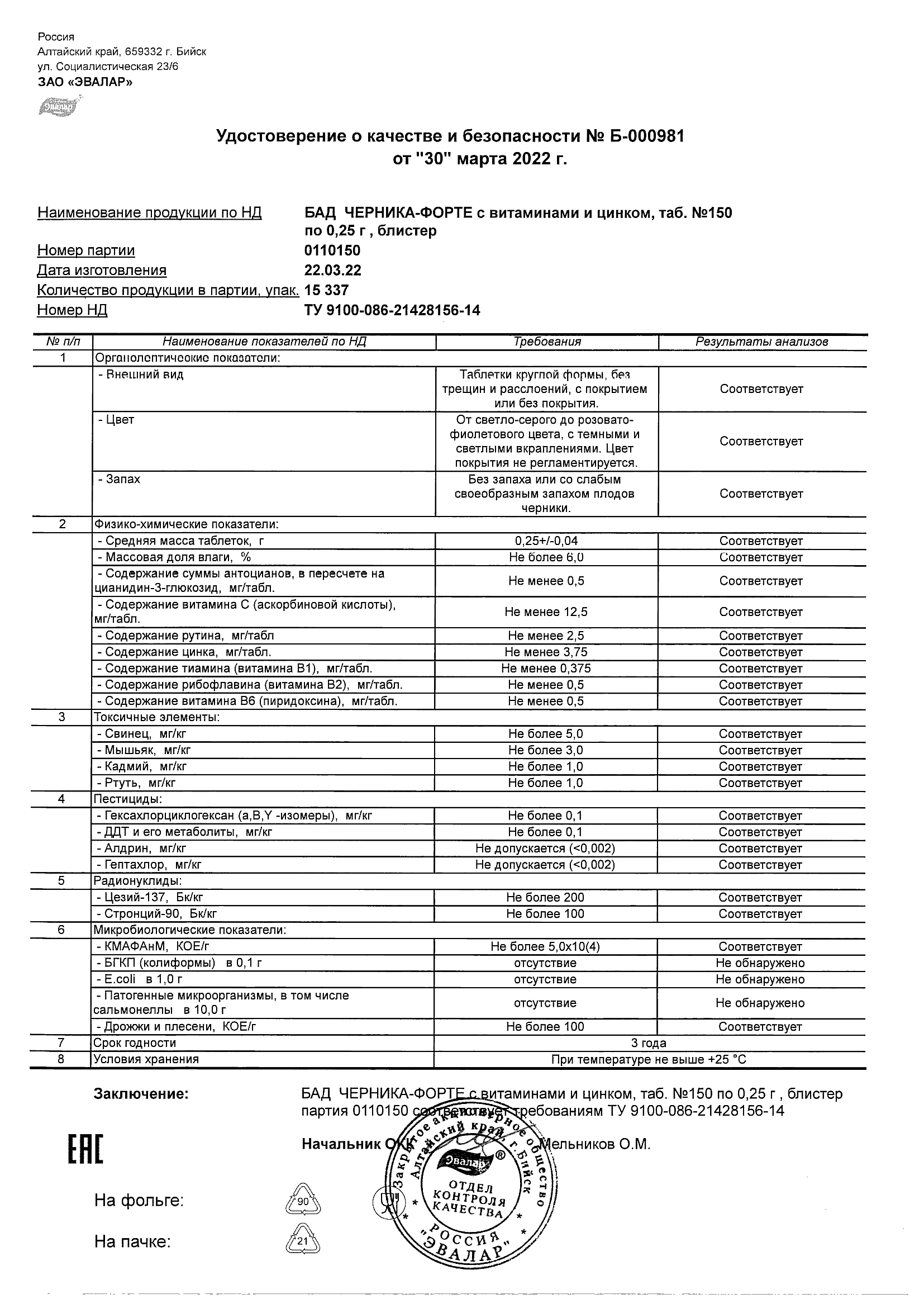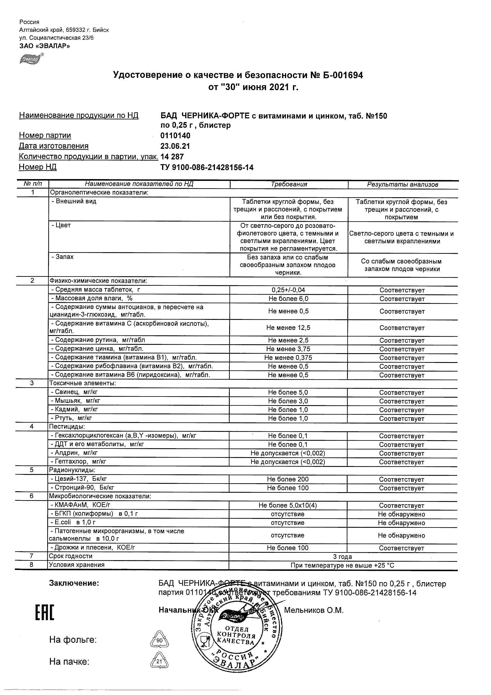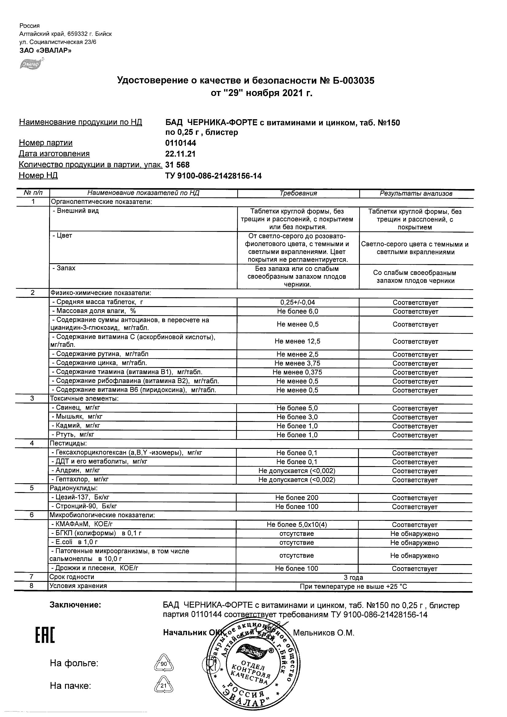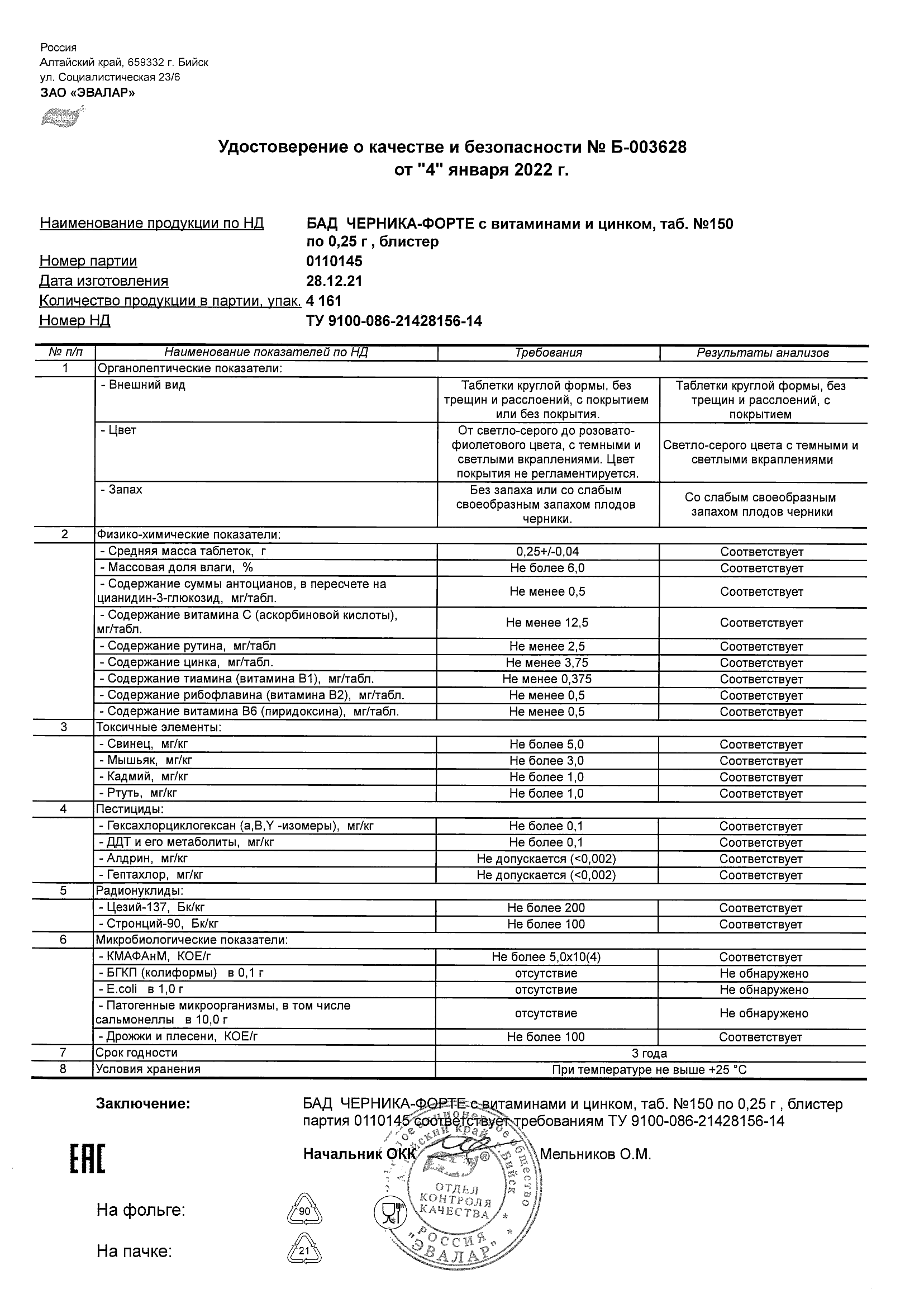 Index of /docs/chernika-forte s vitaminami i cinkom, tabN150 po 0,25 g blister/
