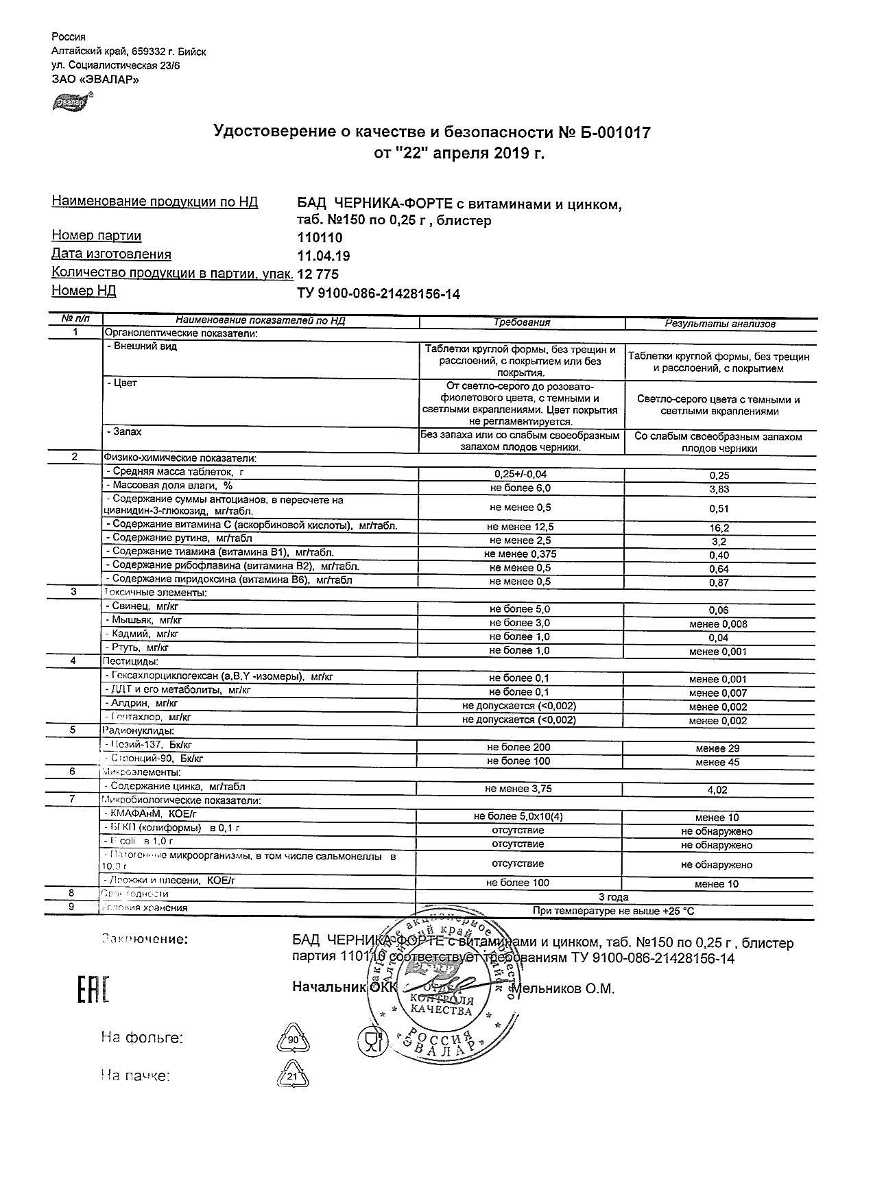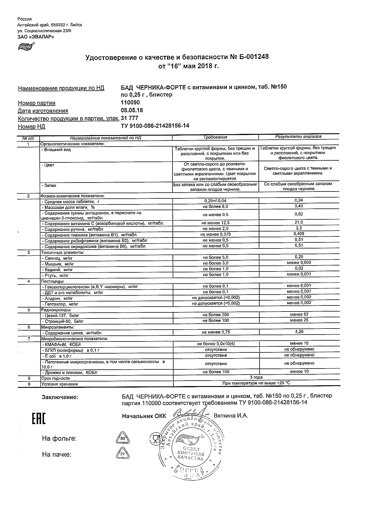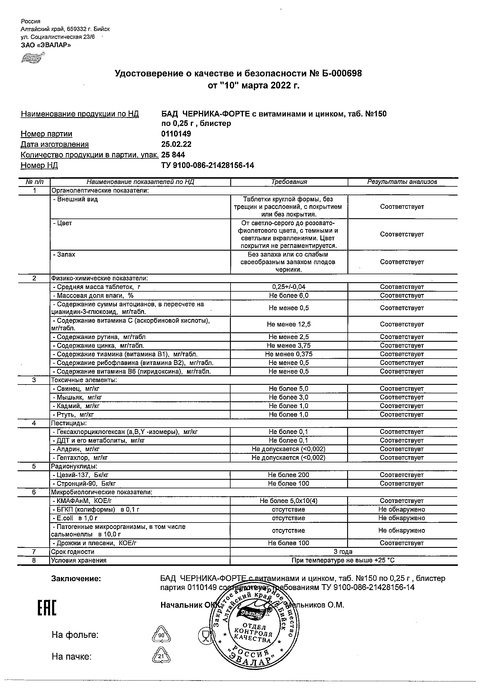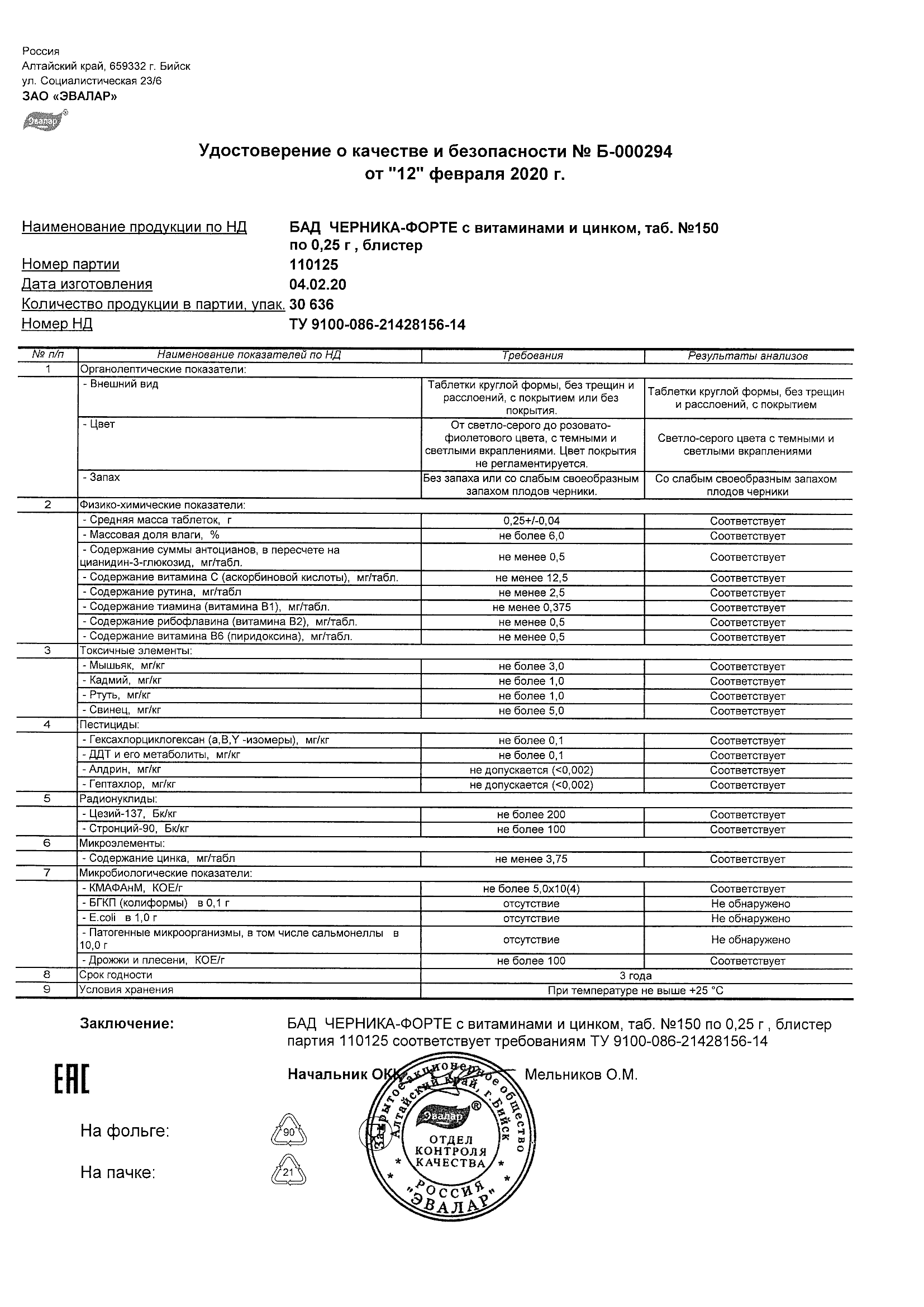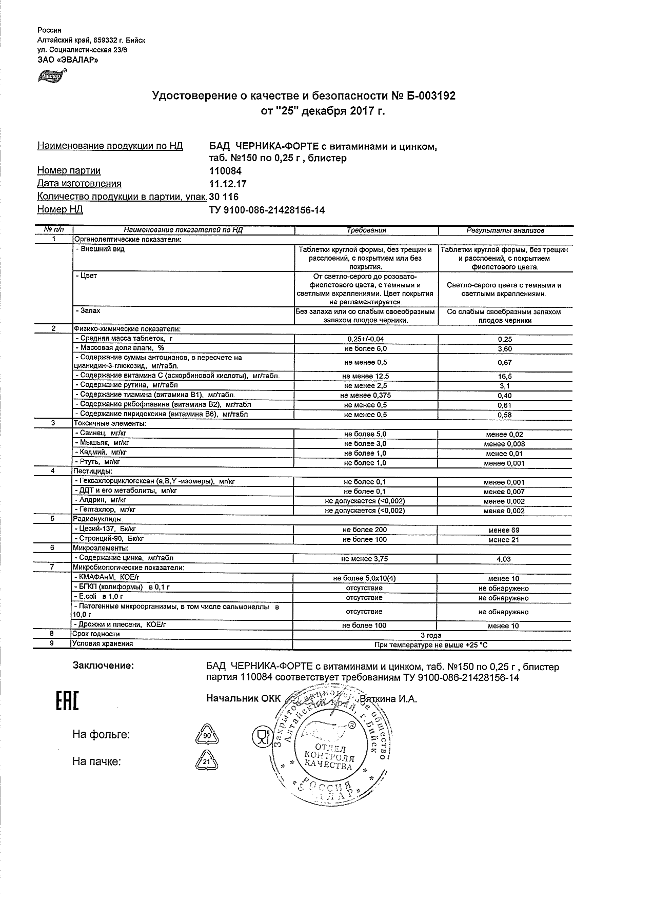 Index of /docs/chernika-forte s vitaminami i cinkom, tabN150 po 0,25 g blister/