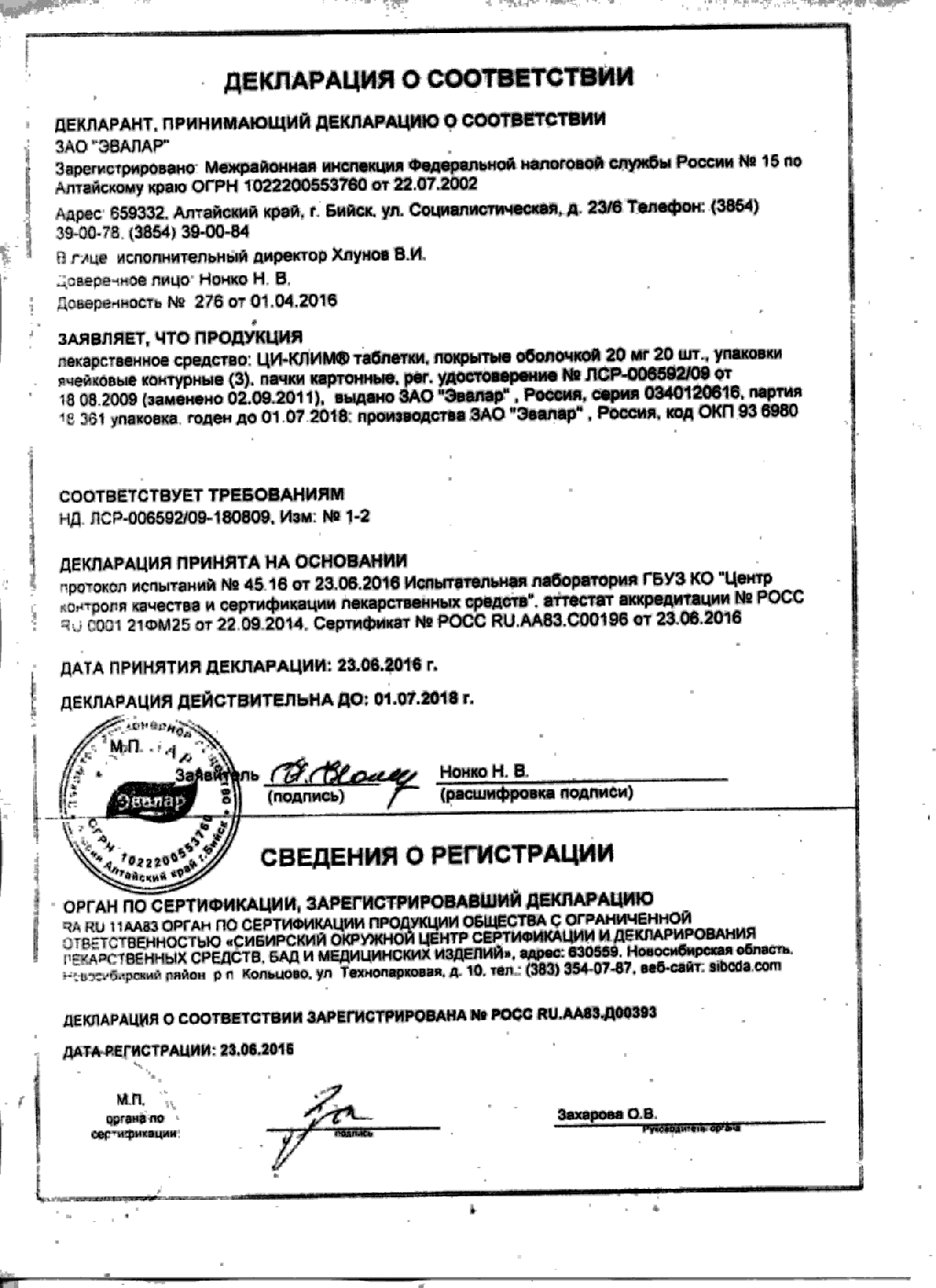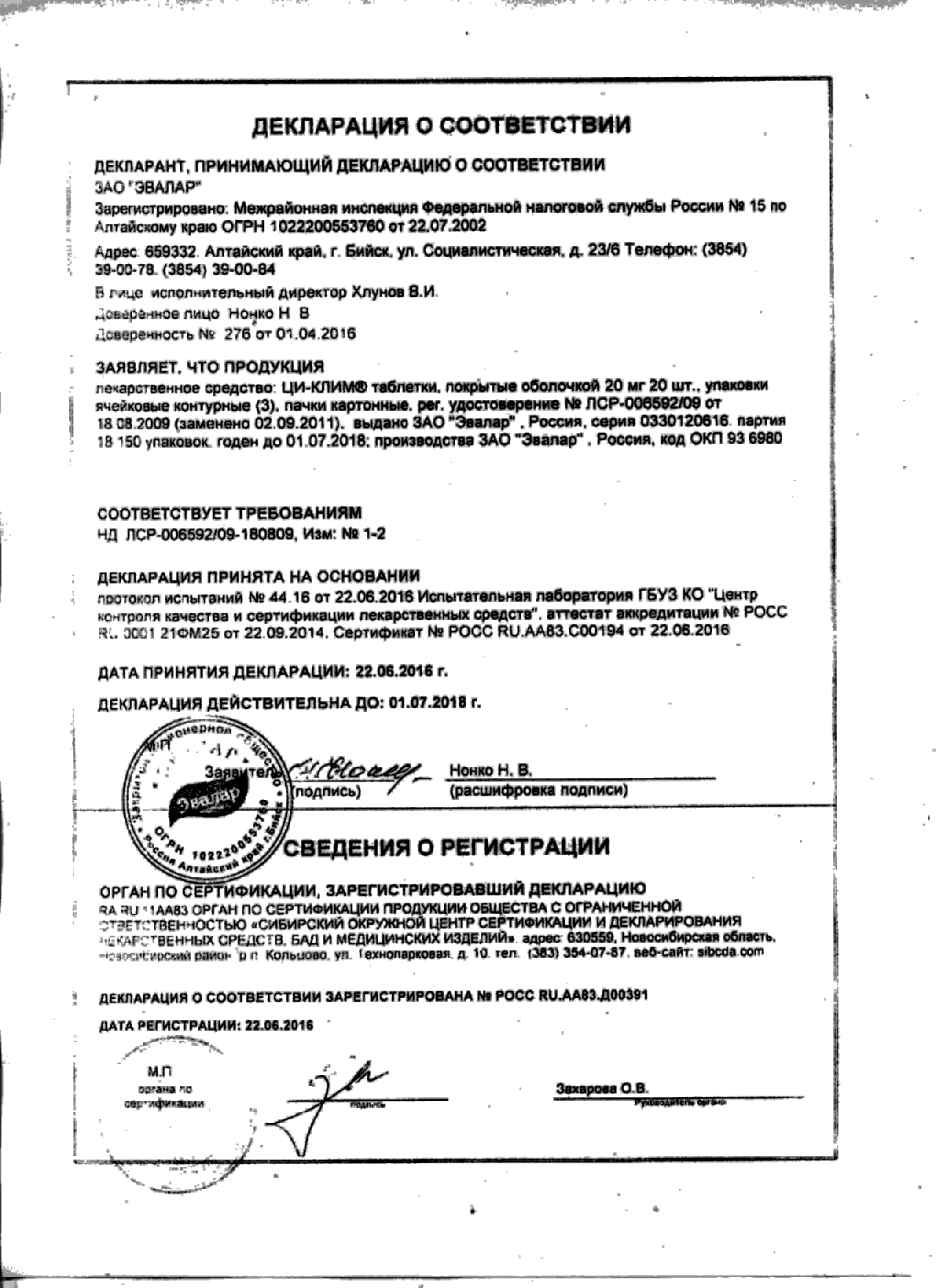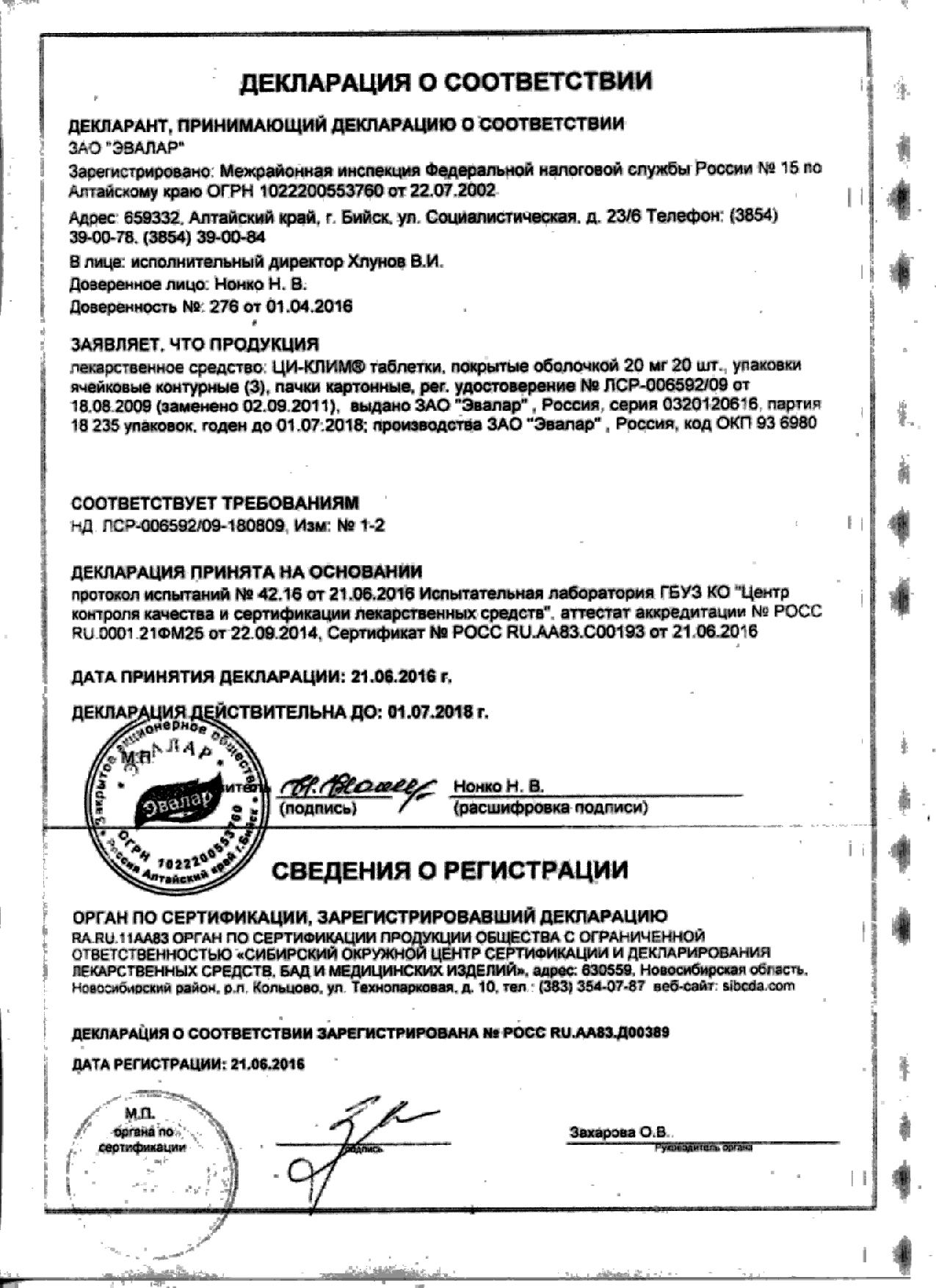 Index of /docs/ci-klim, tabletki, pokrytye obolochkoj 20 mg, N 60/
